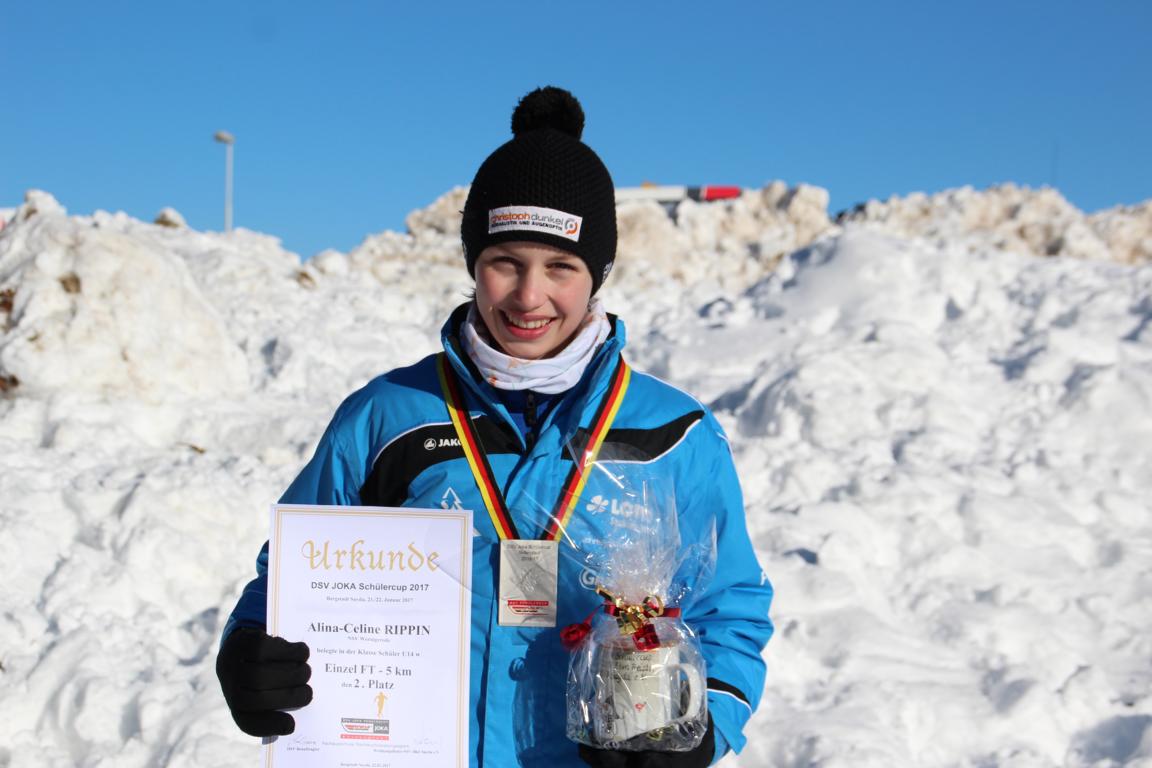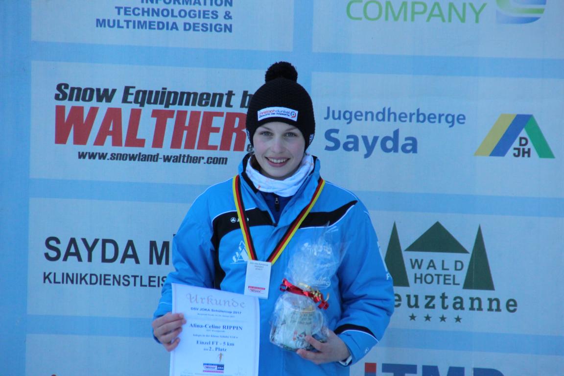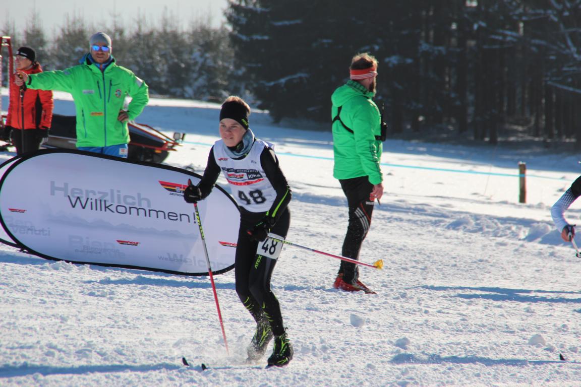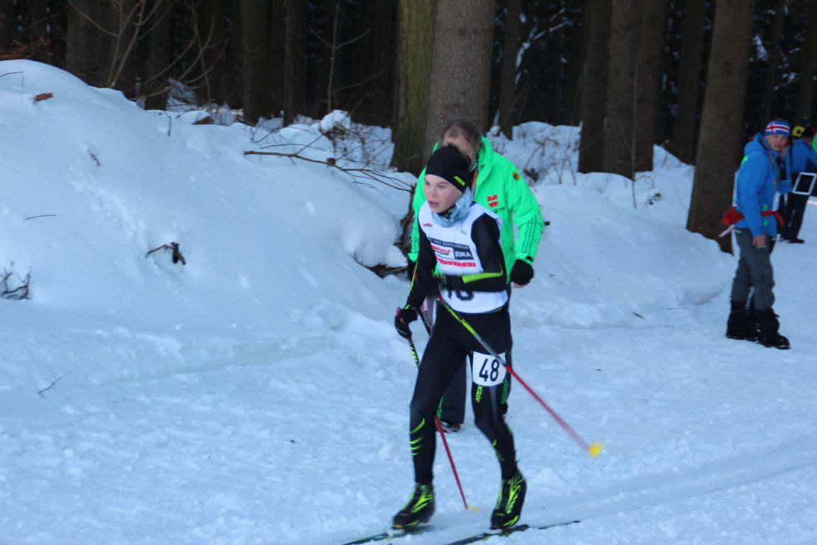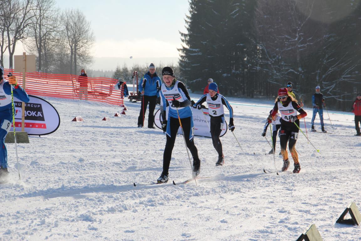 Am Sonntag folgte für alle Altersklassen ein Distanzrennen in freier Technik über 5km. Herausragend präsentierte sich dabei Alina-Celine Rippin, die bereits in der ersten der zwei zu laufenden Runden ums Podest kämpfte, und zum Ende des Rennens nochmals Boden gut machte. Sie musste sich lediglich der Klingenthalerin Philine Körner geschlagen geben. Vereinskamerad Jannis Grimmecke lief ebenfalls ein solides Rennen und ordnete sich mit 45 Sekunden Rückstand zur Spitze auf einem guten 16. Rang ein. Komplettiert wurde das gute Abschneiden der Mannschaft durch Cedric Sikorski mit Rang 27 und Platz 41 durch die Elbingeröderin Angelina Straub.