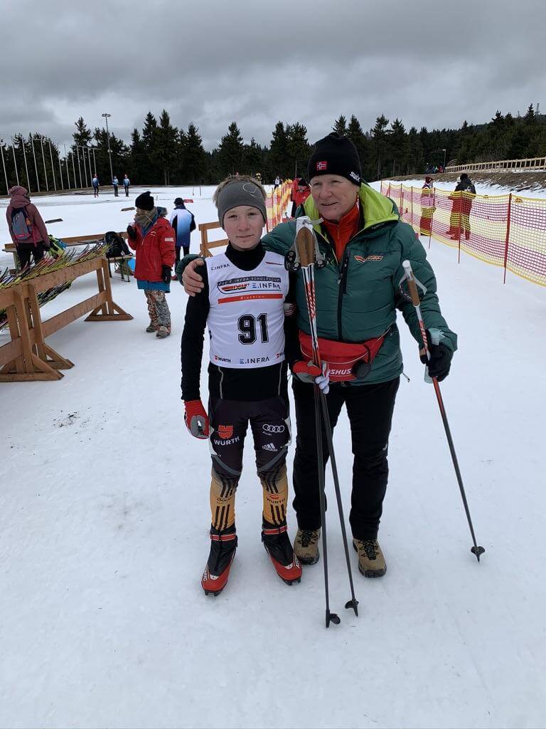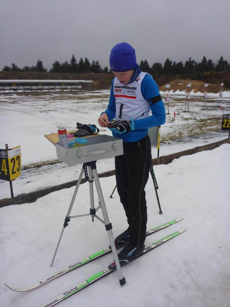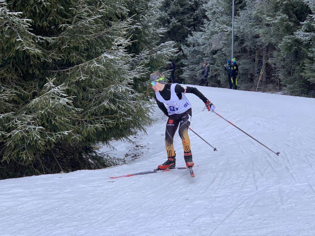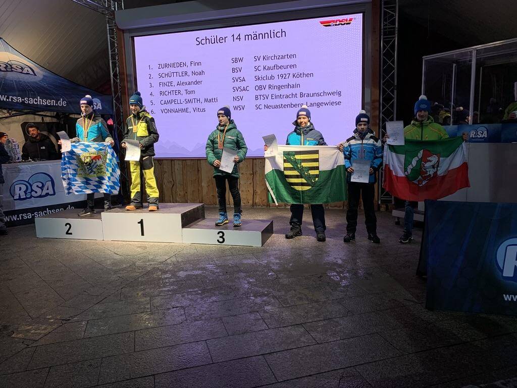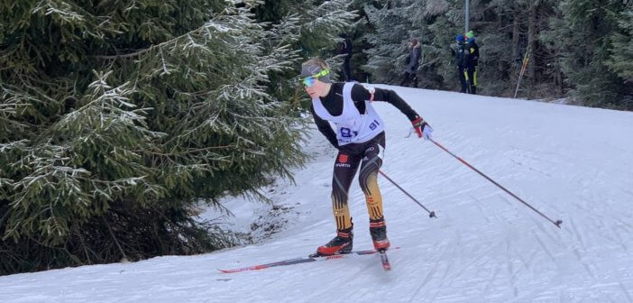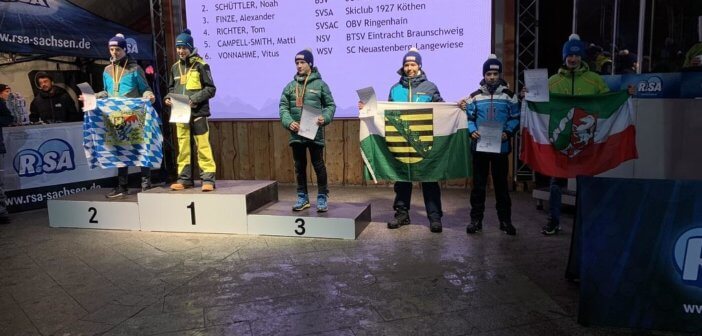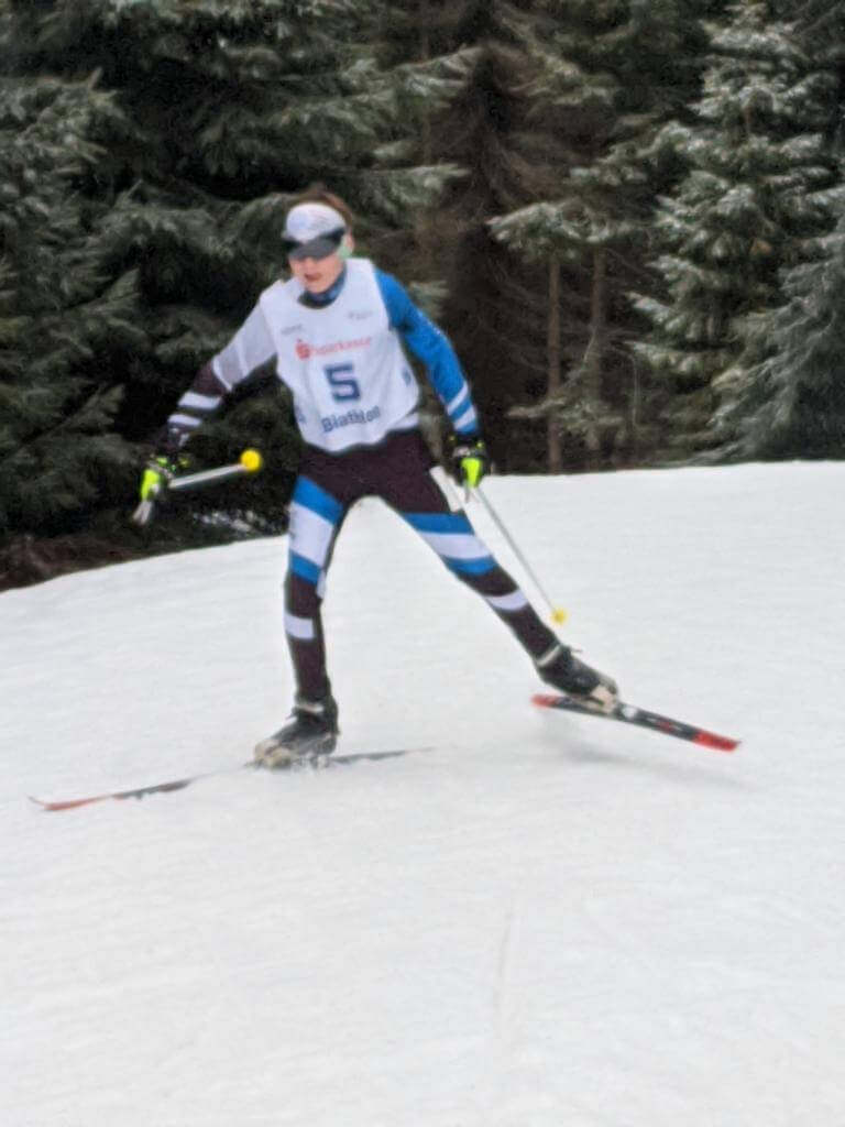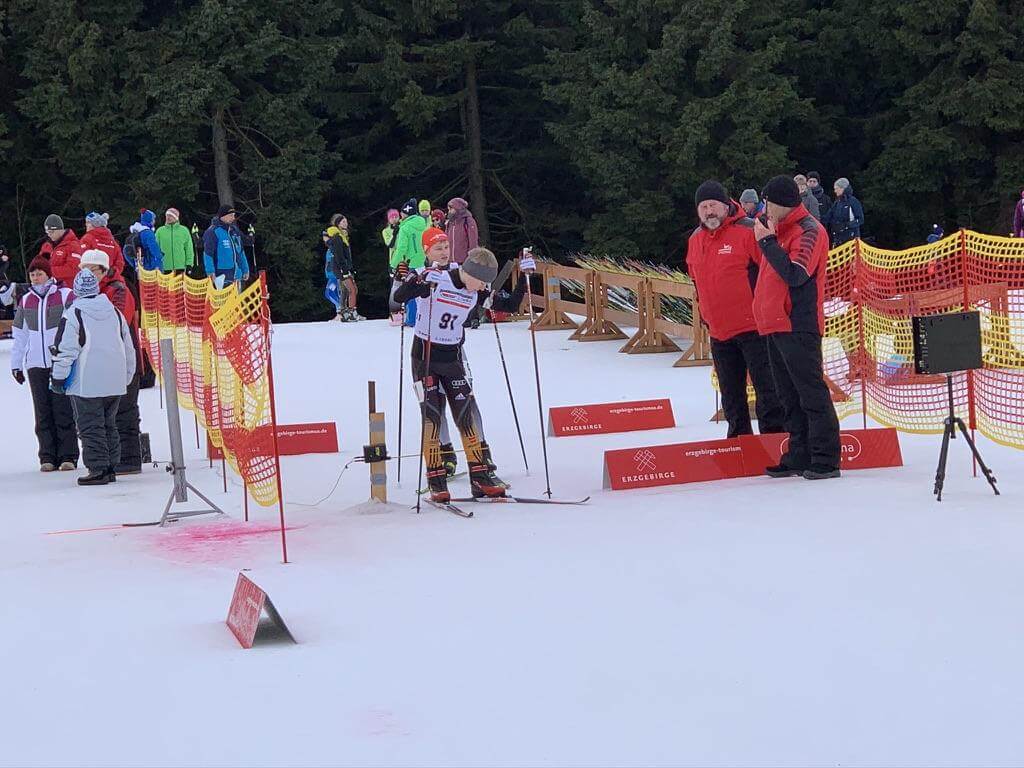 In Oberwiesenthal fand trotz Schneemangels der Deutsche Schüler Cup im Biathlon statt. Sehr eisige Schneereste machten es notwendig, das der Veranstalter die Wettkämpfe abändern musste. Kein Problem für den Biathlonnachwuchs vom Skiclub 1927 Köthen. So fand am Samstag ein Einzelwettkampf und am Sonntag ein Sprintwettkampf statt. Temperaturen unter Null°C ließ die Strecke am Samstag wieder durchfrieren, sodass zum Einzelwettkampf die Strecke super schnell und hart war. Stürzen sollte man nicht! Nach dem anschießen auf Bahn 20 (eine Außenbahn) bei leichtem Wind ging die S13 zuerst ins Rennen. Für diese Altersklasse ist es eine Standortbestimmung, da sie erstmals unter Schneebedingungen aufeinandertreffen. Julian Thiedemann eröffnete mit Startnummer 1 das Rennen über 3,9km. Er schoss 1/3 und bekam so 2:00min Strafzeit dazu. Ähnlich ging es Hannes Stephan der 3/1 schoss und ebenfalls 2 Strafminuten. Beide schlugen sich wacker. Julian Thiedemann erreichte Platz 8 und Hannes-Stephan-Platz 21. In der S14m gab es für den Skiclub 1927 Köthen wieder einen Podestplatz. Alexander Finze lief die 3.schnellste Laufzeit über 5,2km und schoss 0/2/1. Er muss in diesem Jahr erstmals stehend schießen. Platz 3 war ein Superergebnis. Auch Jessica Friedrich konnte in der S15w an diesem Tag mit 0/1/0/2 über 6,5km in die Punkte laufen. Das war schon ein Supertag. Doch am folgenden Tag sollte es noch besser kommen. Der Wind hatte etwas aufgefrischt und dazu kamleichter Schneegriesel. In der S13m holte sich Julian Thiedemann im Sprint über 3,0 km den 3.Platz. Hannes Stephan ließ keine Scheibe stehen und belegte unerwartet Rang 7. Alexander Finze kam wieder unter den besten Deutschlands ein. Er belegte Rang 4 über 3,9km mit 1/1. Jessica Friedrich erkämpfte sich über 5,8km mit 0/1 Platz 28.