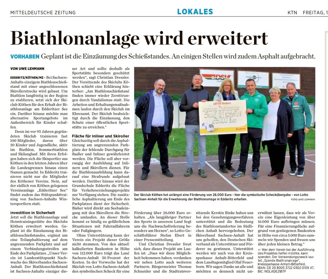Am Edderitzer See wird gebaut, die Biathlonanlage und Heimtrainingsstätte des SC 1927 Köthen wird um eine asphaltierte Übungsfläche und eine Zaunanlage erweitert.