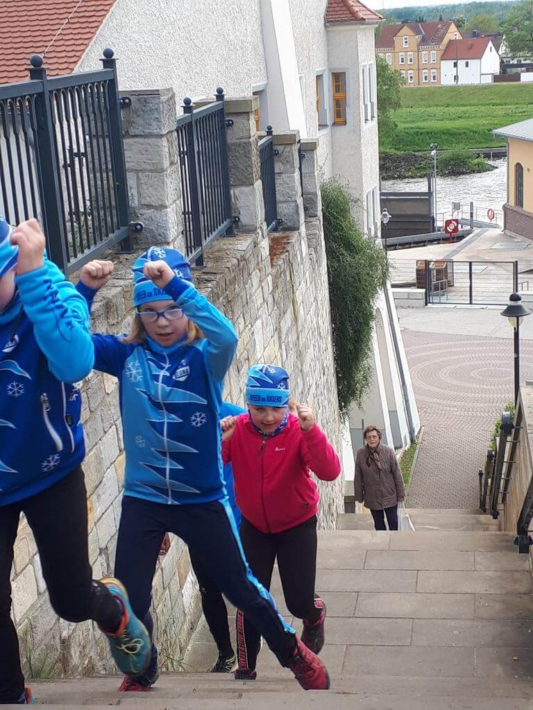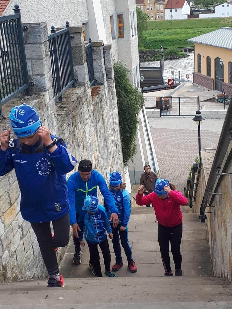 Leuna: Zuerst durften die Kinder wieder zeitweise in die Schule. Schon das war im Zeichen von Covid19 eine Herausforderung für die Schulträger und Lehrkräfte. Da stand nun auch die Frage: Was wird mit dem Nachwuchstraining im Verein. Die Sportstätten bleiben im Saalekreis ja noch immer geschlossen, auch die Außenbereiche der Sportanlagen. Das Trainerteam der Abteilung Ski vom TSV Leuna wagte sich an die organisatorische Herausforderung, am Donnerstag, d. 07.Mai wieder mit Training in kleinen Gruppen von 1 Trainer plus 4 Sportler zu starten. 52 Kinder waren auf 5 Trainer zu verteilen und darüber hinaus verschiedene Trainingsorte zu finden, wo Abstandsregeln eingehalten und ungewollte Begegnungen zwischen den Gruppen vermieden werden können. Radwege werden zum Inlinetraining genutzt, verschiedene Standorte in und um Bad Dürrenberg und Leuna für Training im Crosslauf, darunter die berüchtigte Treppe am Borlachturm. Leider können die vereinseigenen Skirollerausrüstungen (Roller, Stöcke, Schuhe) im Moment nicht genutzt werden, weil befürchtet wird, dass sie die geforderten Desinfektionsmaßnahmen nicht allzu lange überleben. Für die Trainer gilt, dass sie vor jedem Training ihren Gesundheitszustand realistisch einschätzen und protokollieren sollen. Ein Wechsel von Sportlerinnen und Sportlern zwischen den eingeteilten Gruppen ist kategorisch untersagt, Eltern dürfen während des Trainings nicht an der Trainingsstätte verbleiben. Bedingt durch das Kleingruppentraining erhöht sich natürlich vor allem die zeitliche und auch körperliche Belastung des Trainerpersonals erheblich. So wurde aus zwei Trainingseinheiten von 90 Minuten drei zu 60 Minuten gemacht. Somit haben die Trainer bis zu 3, bei Wetter bedingten Verschiebungen sogar 4 Gruppen an einem Nachmittag bis in die frühen Abendstunden zu betreuen. Diese 60 Minuten werden von den Trainierenden aber intensiver genutzt als mitunter die 90 Minuten in einer größeren Gruppe, so dass sich ein entsprechender Trainingseffekt sicher einstellen wird.
