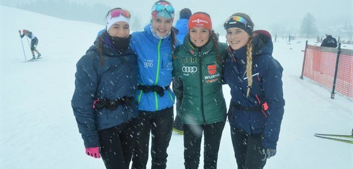 Eine besondere Stimmung herrschte dann am Sonntag, für den 141 Vereinsstaffeln gemeldet hatten. Besonderheit war hier, dass alle Sportler dem gleichen Verein angehören mussten. Leider schaffte es hier aus Sachsen-Anhalt nur eine Vereinsstaffel in die reguläre Wertung. Die Mixed-Staffel vom NSV Wernigerode mit Franziska Dahlhaus, Jannis Grimmecke und Thomas Kühlmann wurden im stark besetzten Feld 33. von 43 Staffeln. Eine weitere Staffel war nicht regelgerecht aus 3 Vereinen zusammengesetzt und damit nur außer der regulären Konkurrenz. Besonders erwähnenswert bei den Vereinsstaffeln ist, dass sich zahlreiche bekannte Skilangläufer, die teilweise heute als Trainer tätig sind, in den Dienst ihrer Heimatvereine stellten und deren Staffeln verstärkten. Erstaunlich, was Leute, wie Peter Schlickenrieder, Tobias Angerer, Andreas Schlütter, Renè Sommerfeld, Lutz Hähnel oder Bernd Raupach noch so drauf haben. Das brachte ihnen auch einen großen Beifall ihrer heutigen Schützlinge ein, die die Strecke zahlreich säumten. Wie hatte ich eingangs zitiert: