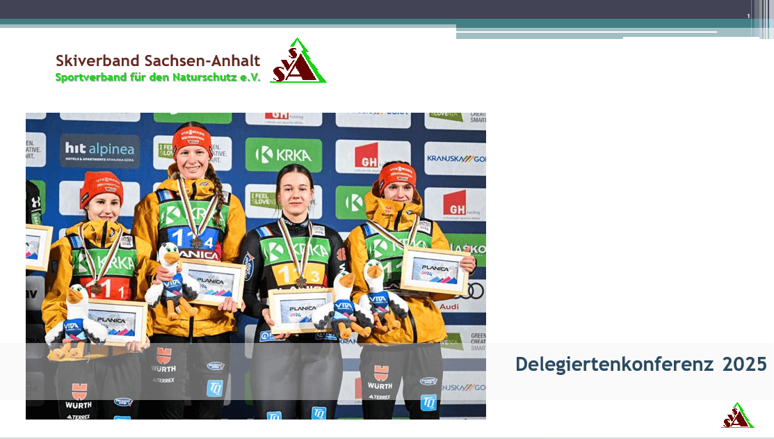 Die diesjährige Delegiertenkonferenz des Skiverband Sachsen Anhalt findet am 6. Dezember 2025 in der Rettungswache des LK Harz in Wernigerode in der Bahnhofstrasse 39 ab 9.30 Uhr statt. Gemeinsam mit seinen Mitgliedern möchte Vorstand und Präsidium das Jahr 2024/25 auswerten und die Planungen für das Haushaltsjahr 2026 sowie Planungen und Weiterentwicklungen im Skisport beschließen. Alle Delegierten der einzelnen Mitgliedsvereine sind dazu recht herzlich eingeladen.