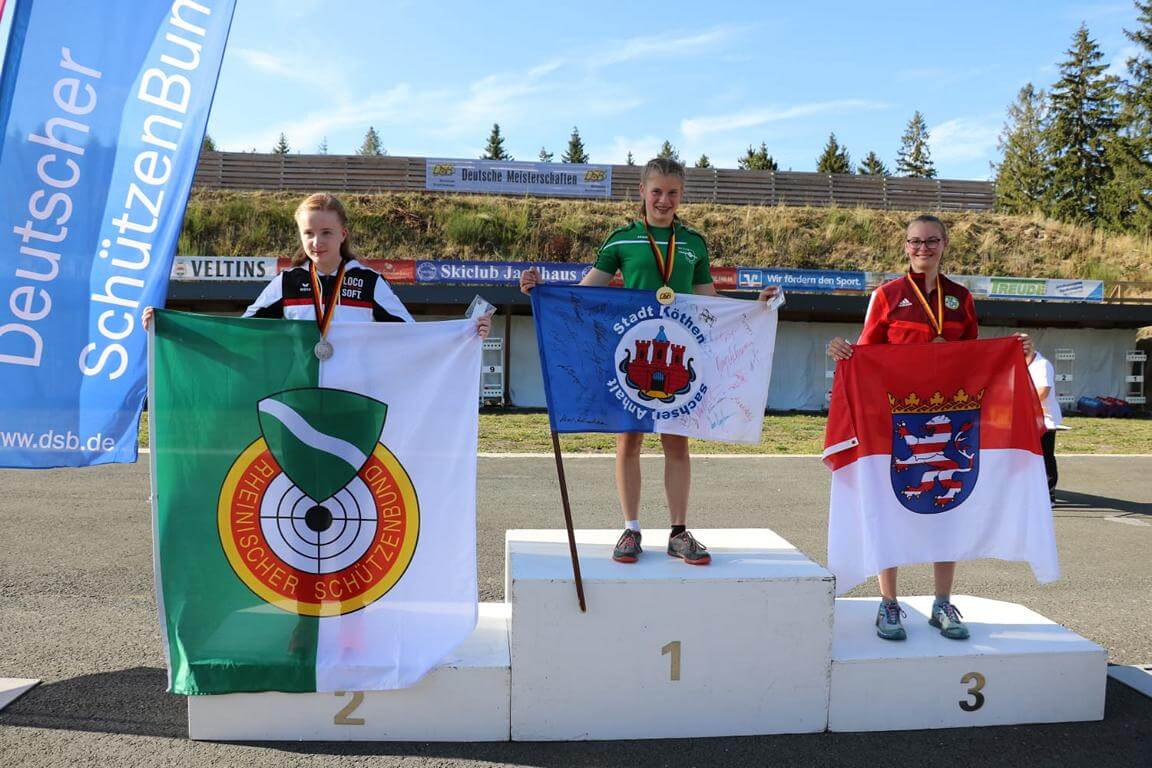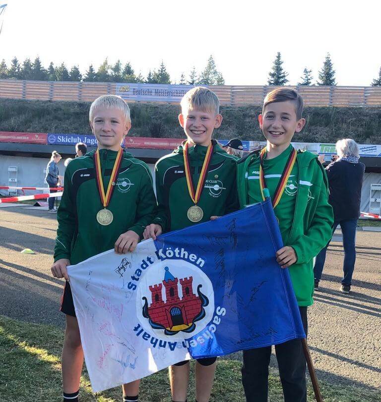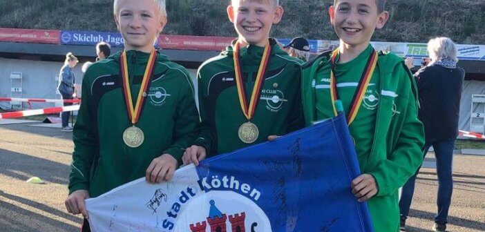 Am vergangenen Wochenende fanden in Jagdhaus die Deutschen Meisterschaften im Luftgewehr statt. Bei sonnigem Wettkampfwetter und einigen windigen Einlagen starteten die Biathleten des Skiclub 1927 Köthen zu dieser Meisterschaft. Am Freitag fanden die Staffelwettkämpfe aller Altersklassen statt. Unsere Schülerstaffel holte sich hier die Bronzemedaille. Hannes Stephan als Startläufer legte mit einem soliden Rennen die Grundlage. Julian Thiedemann ließ trotz Nachlader eine Scheibe stehen und musste 1x in die Strafrunde. So musste Alexander Finze als Schlussläufer nochmals zeigen wie es geht. Sicher lief er den 3. Platz nach Hause. Unsere Männermannschaft mit Johannes Pick, Dirk Hammer und Tobias Schröder kam auf Platz 10 ins Ziel. Samstag und Sonntag mussten alle nochmals im Sprint und Massenstart ran. Hier konnte Ronja Twieg an beiden Tagen einen souveränen Sieg in der Jugend weiblich nach Hause laufen. Eine weitere Medaille gab es für Alexander Finze bei den Schülern männlich. Platz 3 im Massenstart und Platz 5 im Sprint. Hannes Stephan belegte Rang 14 und 18. Julian Thiedemann konnte Platz 19 und 5 erreichen. In der Jugend männlich war Timon Herfurth mit Platz 11 und Platz 9 mit seiner Leistung zufrieden. Torsten Franke, Johannes Pick und Horst Hoffman erreichten für den Skiclub 1927 Köthen noch 6. Plätze. Da das Laufniveau in den einzelnen Altersklasen stark angezogen hat, sind auch die anderen Platzierungen super. Da nun mit diesen Deutschen Meisterschaften die Sommerbiathlonsaison zu Ende geht, sind die Köthener Biathleten sofort im Wintermodus.