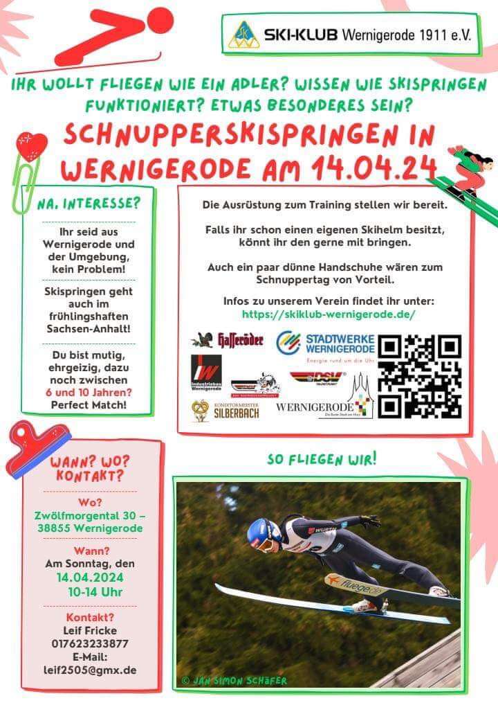 | So | 14.04.2024 | Schnupperskispringen | Ski-Klub Wernigerode 1911 e.V | Download | |