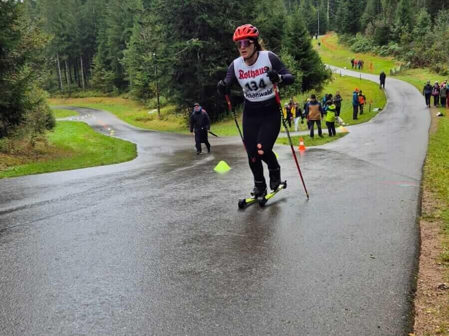 Für Emil Kitzmann und Gina Nicolodi in der AK 13 war es der erste Schülercup. Bei diesen widrigen Witterungsbedingungen konnten sich beide gut präsentieren. Emil konnte sich nach dem 17. Rang im Ringwertungsschießen, beim Skiroller-Wettbewerb auf den 16. Rang verbessern. Am Sonntag hatte er mit 2 Schießfehlern den 20. Platz erreicht. Gina kämpfte mit dem starken Regen und konnte leider nicht ihr gutes Schießergebnis von vor 14 Tagen in Willingen wiederholen. Mit Rang 23 und 21. Im Massenstart am Sonntag sind Potenziale für die Winterwettbewerbe erkennbar. Holly Kreitschmann (AK 15) läuft ihre letzte Schülercup Saison. Die Vorbereitung verlief nicht optimal. Rang 25 im Verfolger. Im Massenstart hatte Holly mit technischen Problemen an der Waffe zu kämpfen, was ihr viel Zeit am Schießstand gekostet hat. (Rang 27)