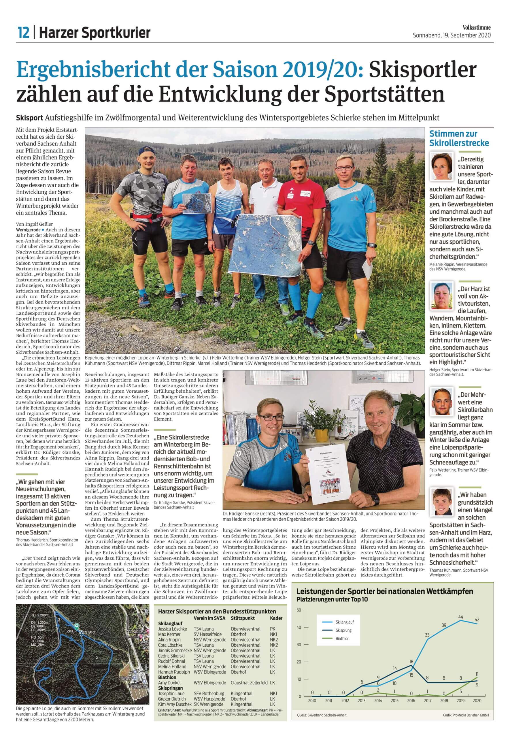 Ergebnisbericht der Saison 2019/20: Skisportler zählen auf die Entwicklung der Sportstätten