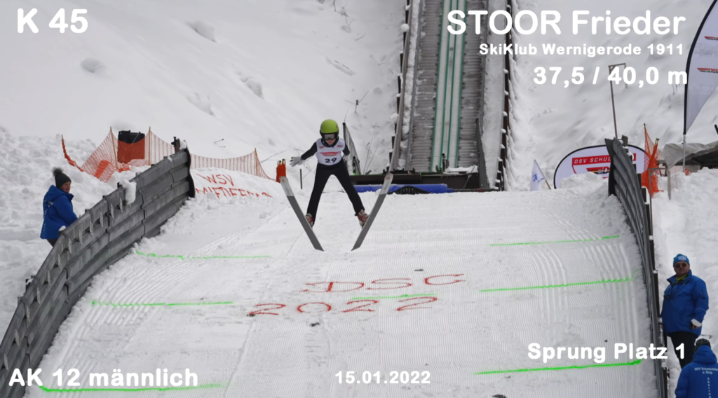 In der Schülerklasse 12 schaffte Frieder Stoor am Samstag auf der 45m-Schanze seinen ersten Sieg. Dies ist auch zugleich der erste Sieg bei einem Schülercup-Springen für den Skiklub Wernigerode. Mit Weiten von 37.5m und 40.0m landete er beide Sprünge mit sehr guten Haltungsnoten und lag am Ende vor dem derzeit Gesamtführenden Colin Ketterer (SZ Breitnau/SBW) und Nicolai Holzer (WSV Oberaudorf/BSV).