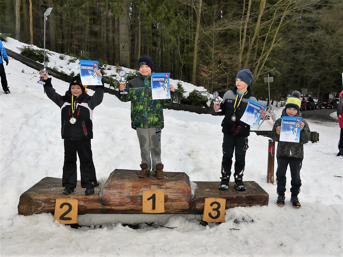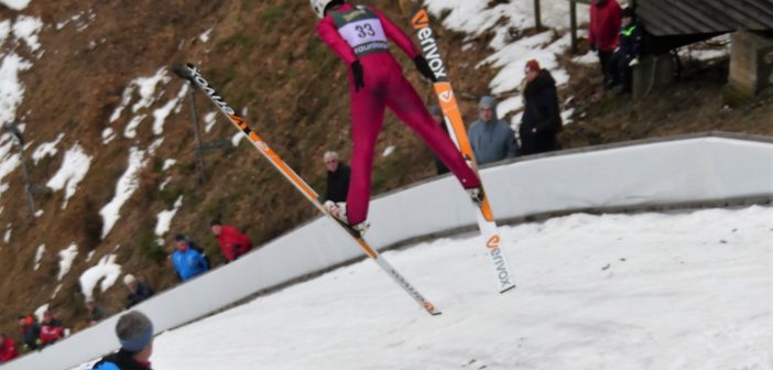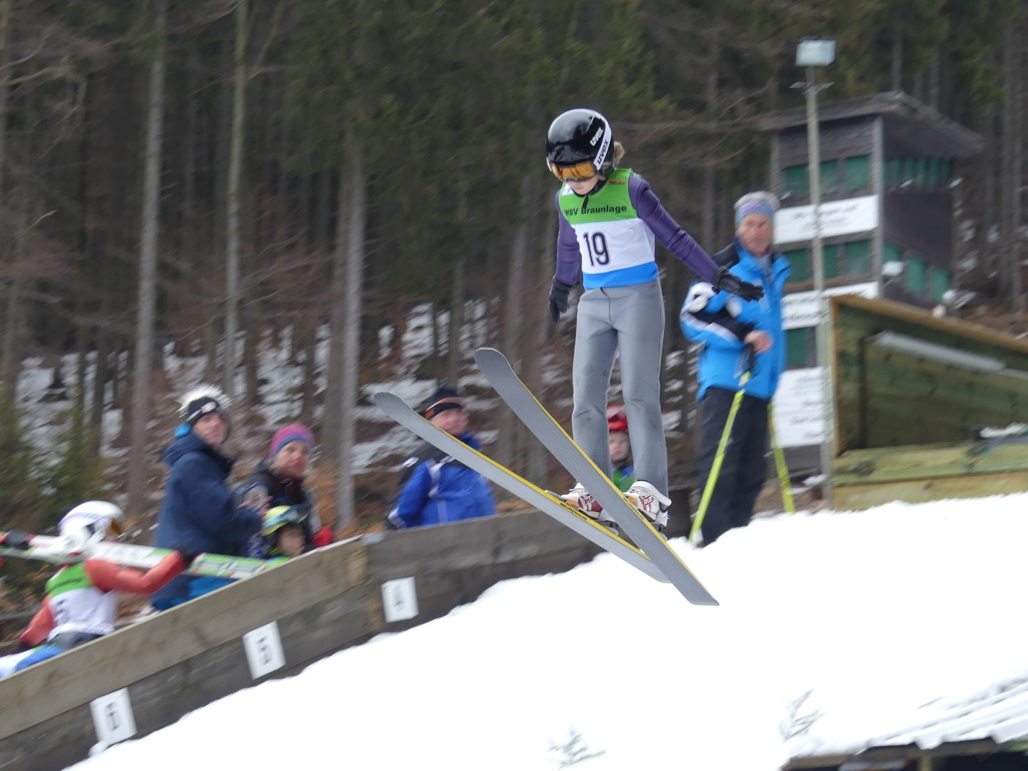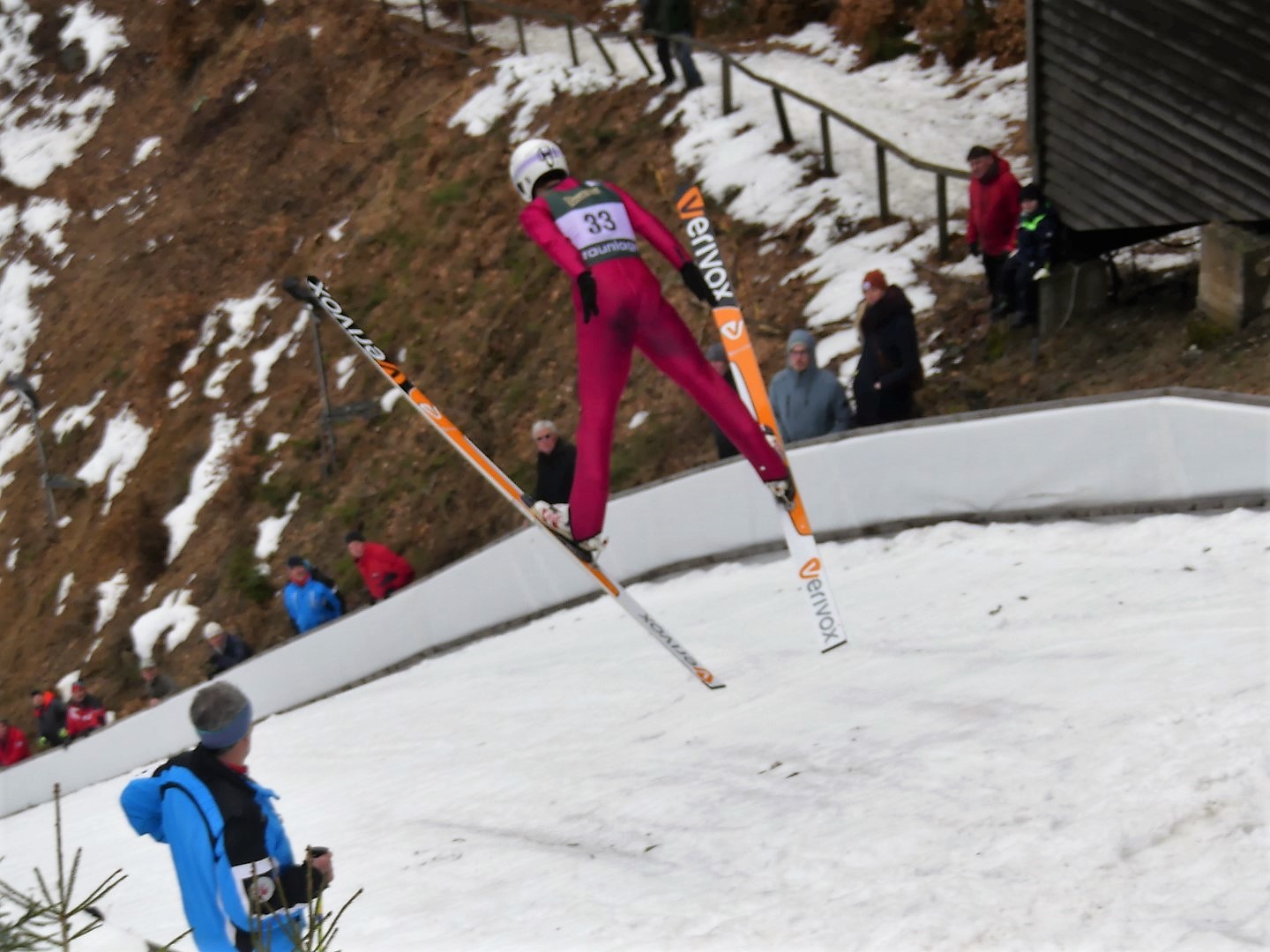 Eindrucksvoll mit Tagesbestweite im ersten Durchgang von 5.5m auf der 7m-Schanze kehrte der 6-jährige Frieder Stoor nach krankheitsbedingter Pause zurück. Im zweiten Durchgang erzielte er ebenfalls den weitesten Satz auf 4.5 m. Das bedeutete am Ende 2 mal den ersten Platz, als Landesmeister und Gesamtsieger des Tages in der AK 7. Sein Teamkamerad Matti Sommer schaffte ebenfalls den Platz aufs Treppchen und wurde Vizelandesmeister.
