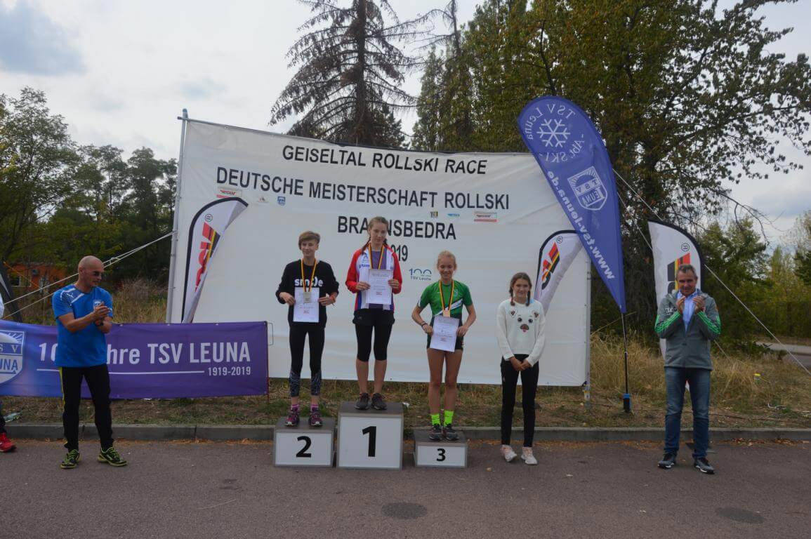 Über zwei Deutsche Meistertitel und eine Vizemeisterin konnte sich der gastgebende TSV Leuna freuen. Deutsche Jugendmeisterin U16 –U18 wurde Cora Löschke. Sie hat sich über die 15 km einen harten Kampf mit Frances Kaiser (SG Klotzsche) geliefert, die sie erst auf dem letzen leichten Anstieg vor dem Ziel bezwingen konnte. Cedric Sikorski siegte in der U16-U18 mit nur 1 Sekunde vor Franz-Volker Heinrich (PSV Zittau) und Arne Schäfer von der SG Klotzsche. Erst in der gleichen Steigung musste sich Sabine Löschke der Rollski-WM-Teilnehmerin Hanna Nöhmeier (SV Frankenhain) geschlagen geben. Dritte wurde hier Anna Rockstroh von der SV Trebsen.