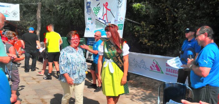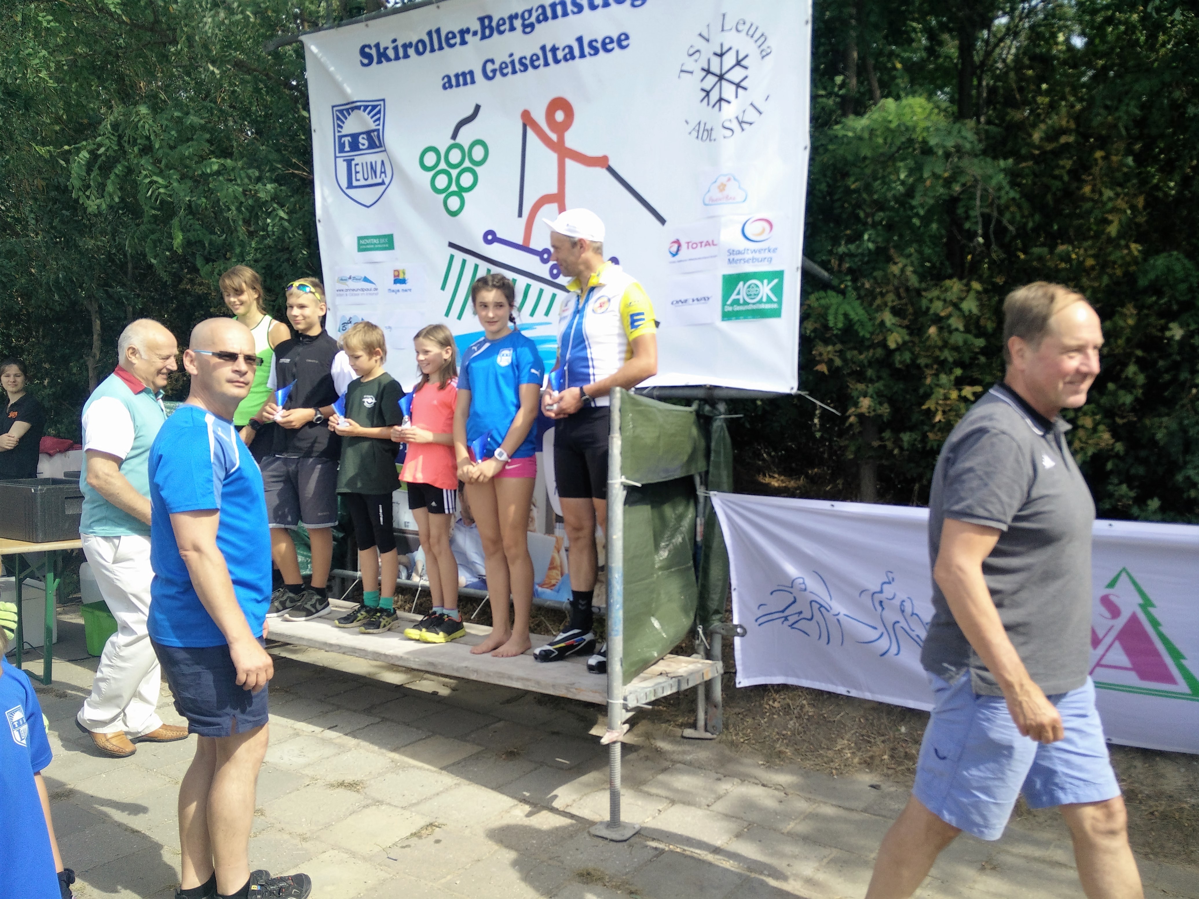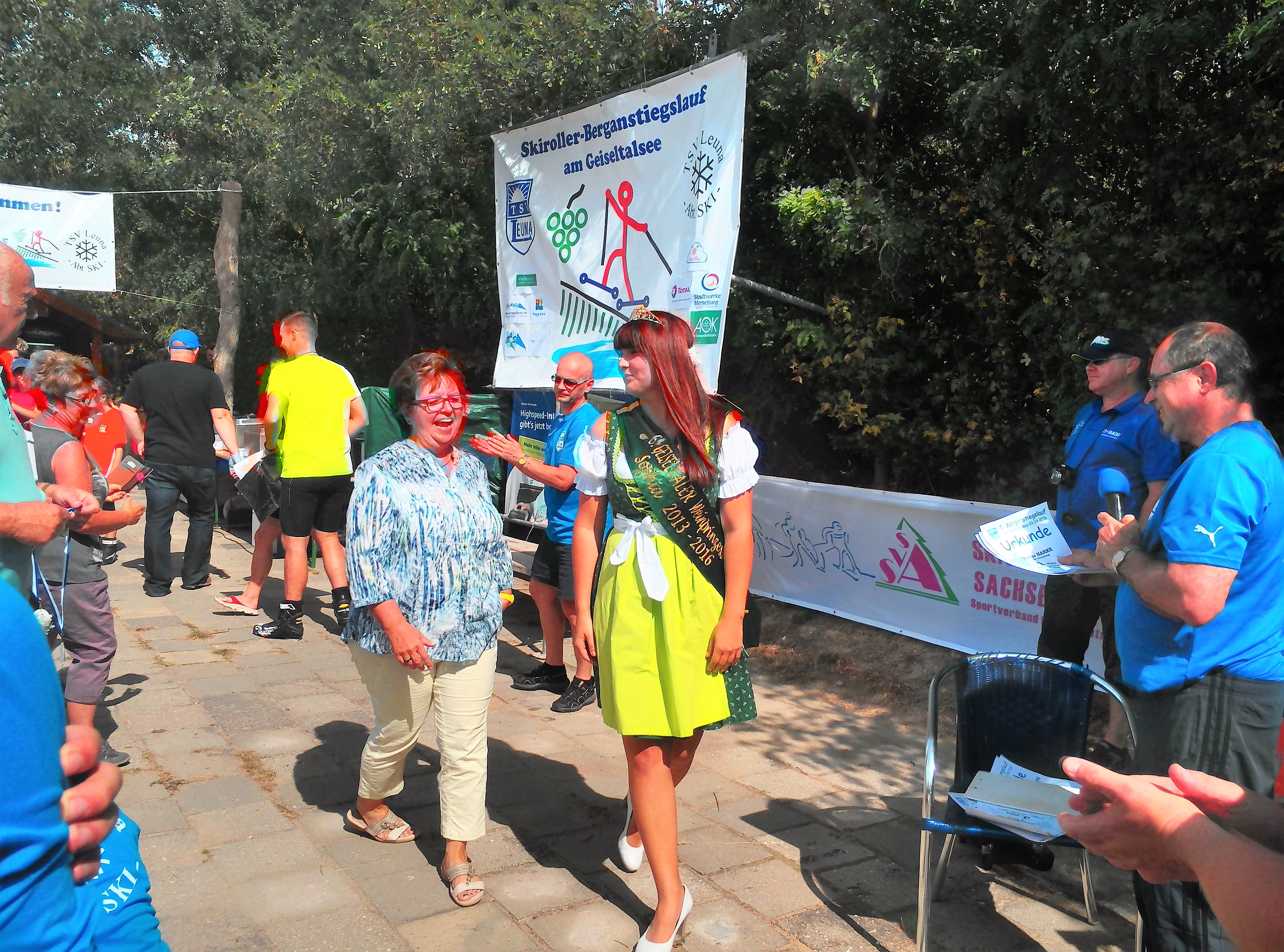 Zur Siegerehrung wurden zunächst die Schnellsten über die einzelnen Distanzen geehrt. Über die 3,5-km-Strecke waren das die Thüringerin Lotta Riechel (WSV 07 Steinbach) und Ludwig Schütte (SC 1927 Köthen), über 4,5 km Cora Löschke (TSV Leuna) und der Oberpfälzer Lukas Hoibl (Skiklub Großberg) und über 7,6 km die Teilnehmerin am Rollski-Weltcup aus Sachsen Anna Rockstroh (SV Trebsen) und der Niedersachse Dirk Debertin (Eintracht Braunschweig). Dirk hat auch dem kurz nach ihm ins Ziel kommenden Thüringer Gunnar Köhler (SV Emsetal) den Streckenrekord abgejagt und dafür eine kleine Prämie mit nach Hause nehmen können. Der Pokal für den punktbesten Verein blieb beim Gastgeber TSV Leuna, der die Wertung vor dem WSV Elbingerode und der TSG Schkeuditz gewann. Eine besondere Ehre für alle Sieger und Platzierten war es natürlich, das die Medaillen und Ehrenpreise von einer echten Hoheit überreicht wurden. Die Weinprinzessin des Geiseltals Sophia wurde dabei von der Präsidentin des Kreissportbundes Saalekreis Angela Heimbach und den Präsidenten des TSV Leuna Jürgen Schulze und des Skiverbandes Sachsen-Anhalt Dr. Rüdiger Ganske unterstützt.