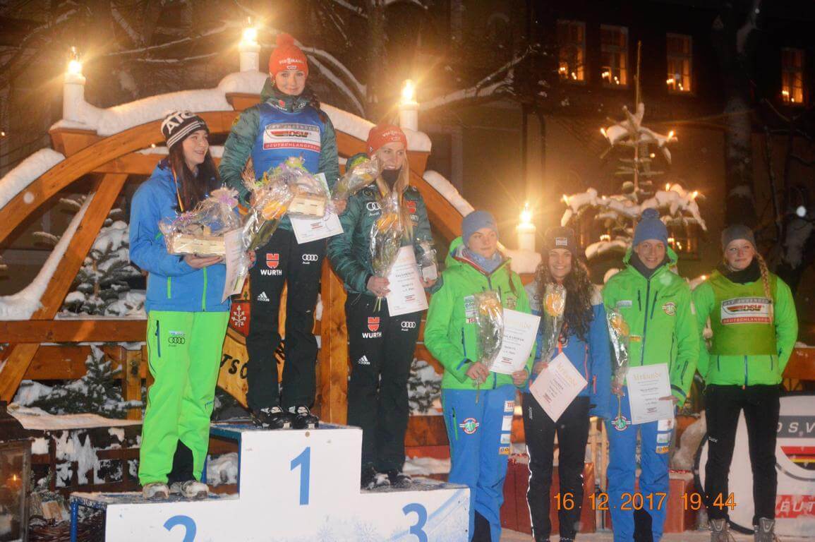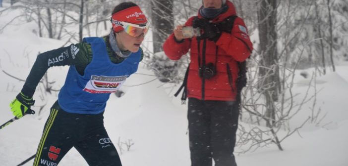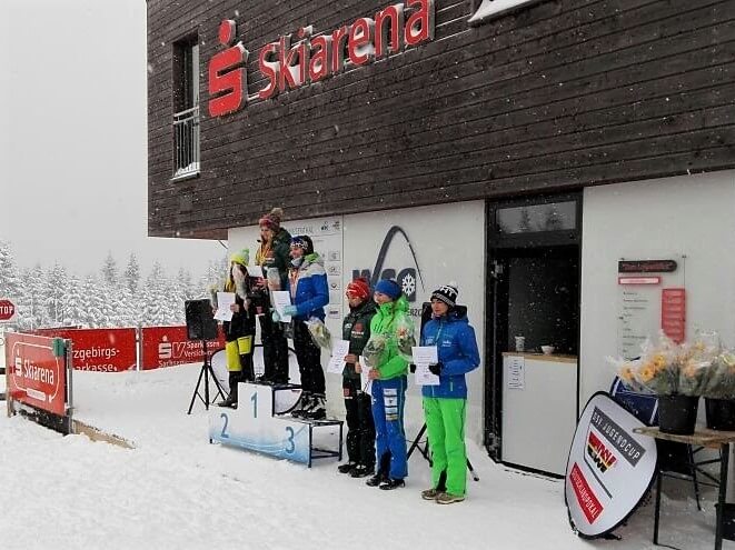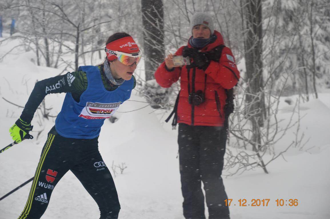 Oberwiesenthal: Richtig Winter war es am Wochenende (16.-17.Dezember 2017) beim dritten Wochende der Rennen um den Deutschlandpokal in der Sparkassenarena am Fichtelberg in Oberwiesenthal. Mehr als ein halber Meter Schnee, Minusgrade, Schneefall und teilweise ein unangenehmer Wind dazu. Das störte aber Jessica Löschke vom TSV Leuna beim Sprintwettkampf in klassischer Technik am Samstag herzlich wenig. Alle Damen ab 17 Jahre und älter starteten in einer gemeinsamen Klasse. Von Anfang an gab sie schon beim Prolog Vollgas, wird doch hier schon entschieden, wer in den nächsten Runden gegen wen antreten muss. Jessica legte auch gleich die Bestzeit alles gestarteten Damen vor. Auch im Viertel- und Halbfinale lief sie sehr engagiert und gewann diese klar. Nun standen sich auf der sehr anspruchsvollen 1,2 km-Runde mit 38 Höhenmetern die besten 6 Damen gegenüber. Jessica übernahm von Anfang an die Initiative und behielt im Verlaufe des gesamten Rennens die Übersicht. In Führung liegend stürmte sie auf die Zielgerade und es kam auch keine der schnellen Damen mehr an ihr vorbei. Neben die Goldmedaille durfte sie sich dann am Abend bei einer stimmungsvollen Siegerehrung auf dem Markplatz von Oberwiesenthal auch noch das Führungsleibchen des Deutschlandpokals umhängen lassen. Sonntag war dann bei starkem Schneefall, -6°C und teils stürmischen Winden das Einzelrennen über 5 km in der Skating-Technik. Leider hatte Jessica nicht den allerschnellten Ski, kämpfte aber tapfer um jeden Platz. In ihrer Klasse U18 wurde es mit einem denkbar knappen Rückstand von 0,8 Sekunden auf Platz 3 Platz 4. Nun warten Anfang Januar auch anspruchsvolle internationale Aufgaben. Gut lief es auch für Max Kermer (SV Hasselfelde) Im Klassiksprint lief er beherzte Rennen in Prolog, Viertel und Halbfinals und konnte so ins Finale über 1,6 km einziehen. Hier musste er den harten Ausscheidungen Tribut zollen und wurde als U18-Läufer im Herrenfinale immerhin 5. . Über 10 km in freier Technik erreichte er Platz 6 in seiner Klasse U18. Auch am Start war Jannis Grimmecke vom NSV Wernigerode in der Klasse U16. Leider war er schon beim Start zum Prolog im Klassik-Sprint etwas unachtsam mit seinem Material und verlor soforteine Ski. Da ist man natürlich beim Sprint gleich chancenlos. Mit Platz 31 fehlte am Ende gerade mal ein Platz zum Weiterkommen. Am Sonntag im Einzelrennen schaffte er es dann aber mit Platz 20 sogar in die Punkteränge.