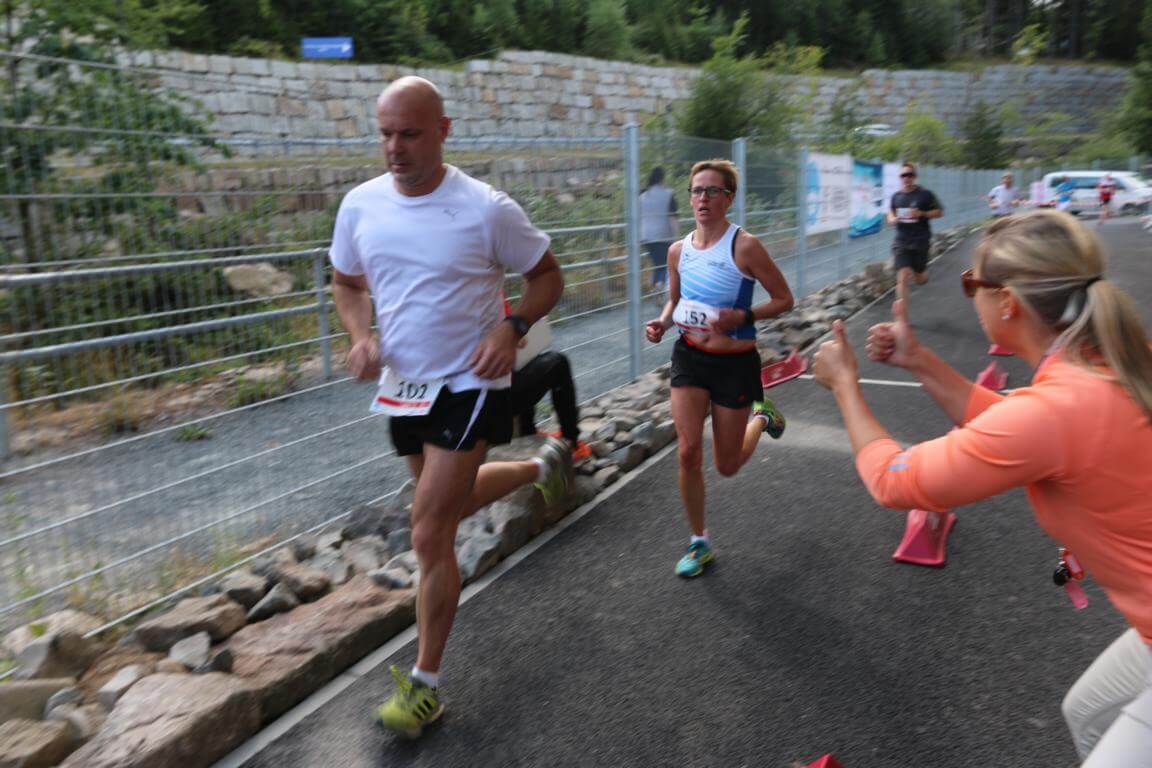 Während die Hauptläufer/-innen in die zweite Runde gingen, konnten sich die Kinder in der Arena beim Sommerangebot „Immer in Bewegung“ zum ermäßigten Eintritt weiterhin austoben. Vor allem der Hindernis-Hüpf-Parcours und die Boulderwand kamen sehr gut an. Der Zieleinlauf des Hauplaufes wurde von den Zuschauern und Gästen mit Spannung erwartet, denn Thomas Kühlmann (NSV Wernigerode) gelang es, den „alten“ Streckenrekord aus dem Jahr 1997 zu unterbieten, den bis dato Dirk Debertin (SG Walldorf) mit 29:11 Minuten hielt. Nun hält ihn Thomas Kühlmann und führt die Bestenliste des Schierker Sommerlaufes mit 28:45 Minuten an.