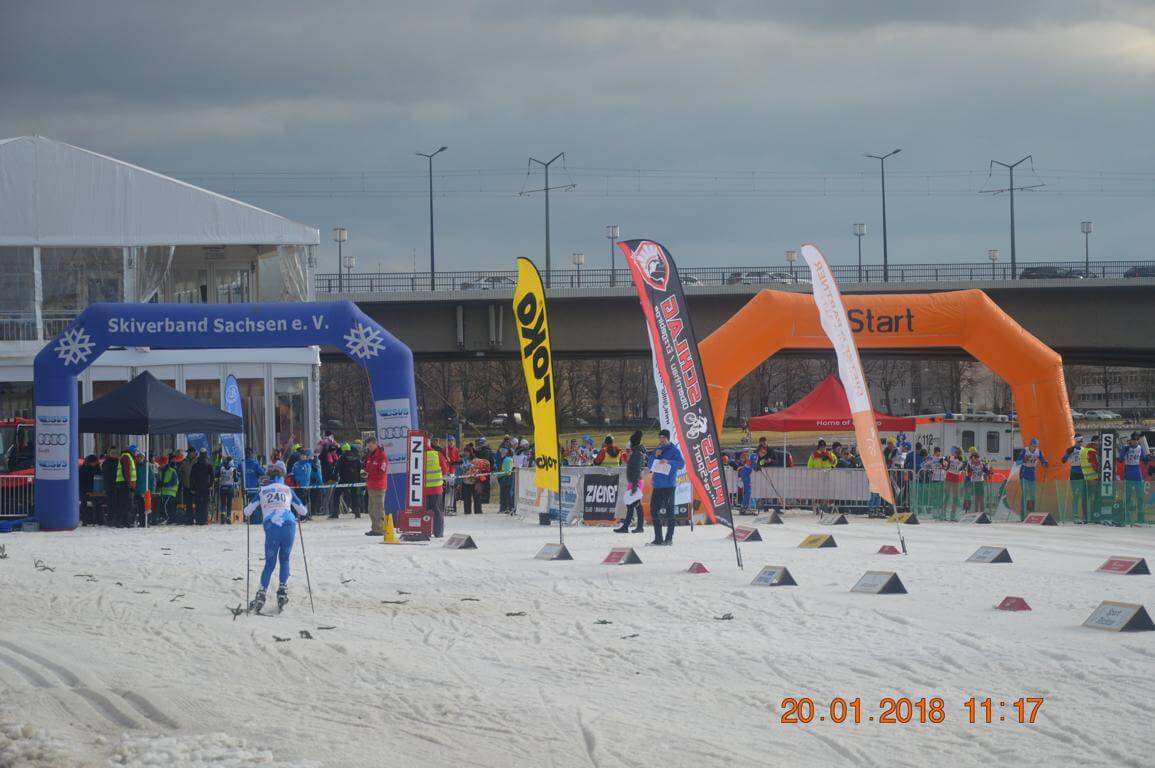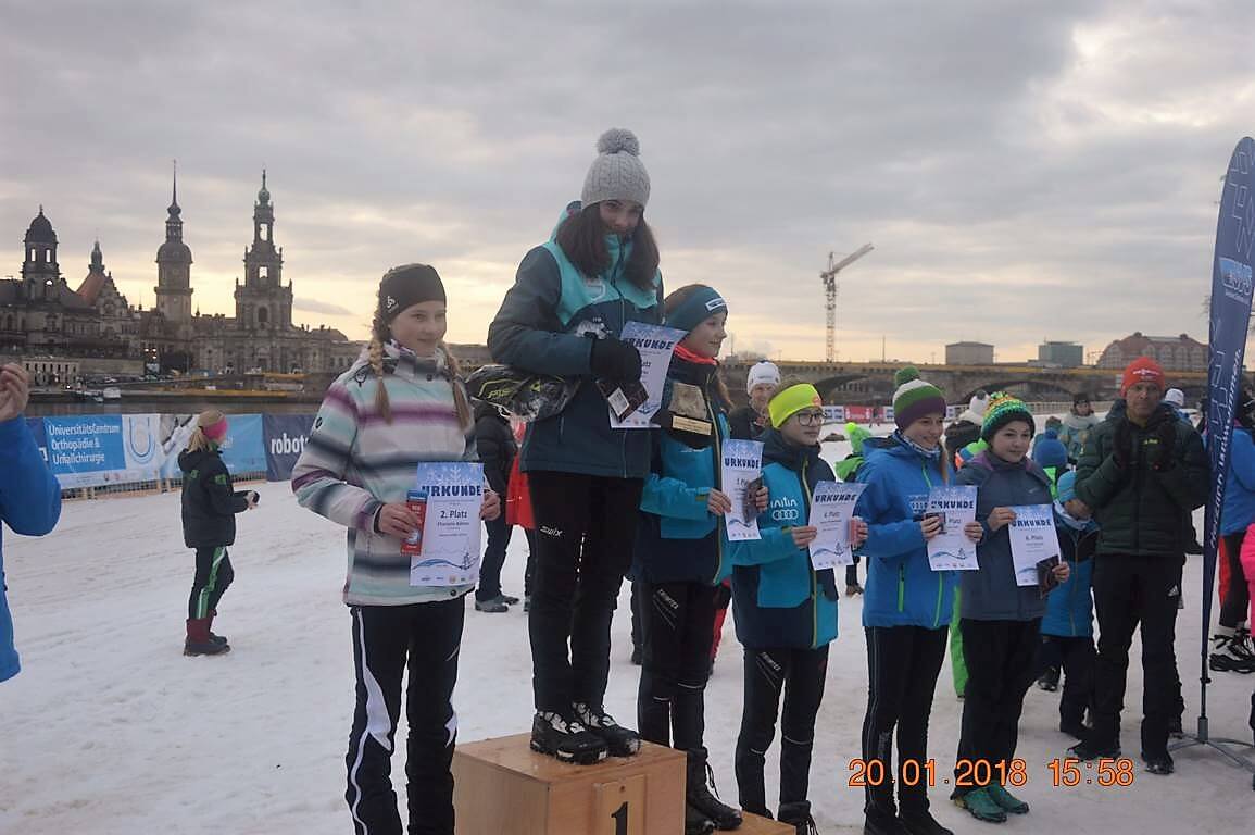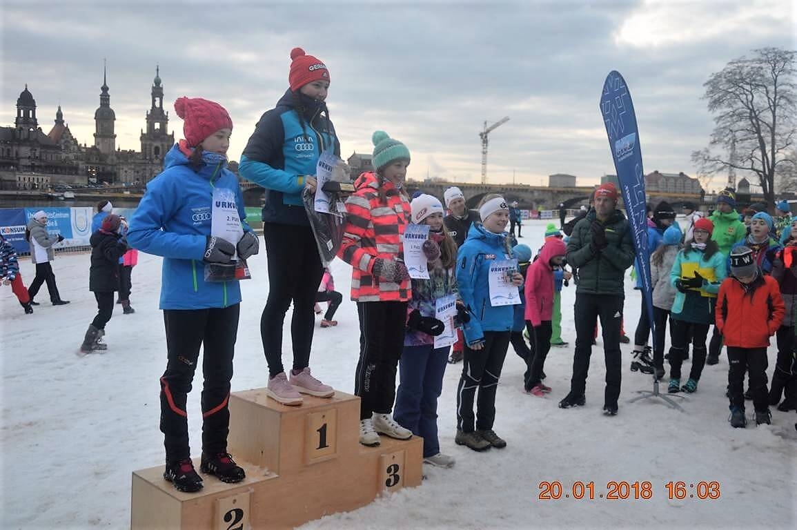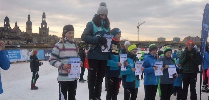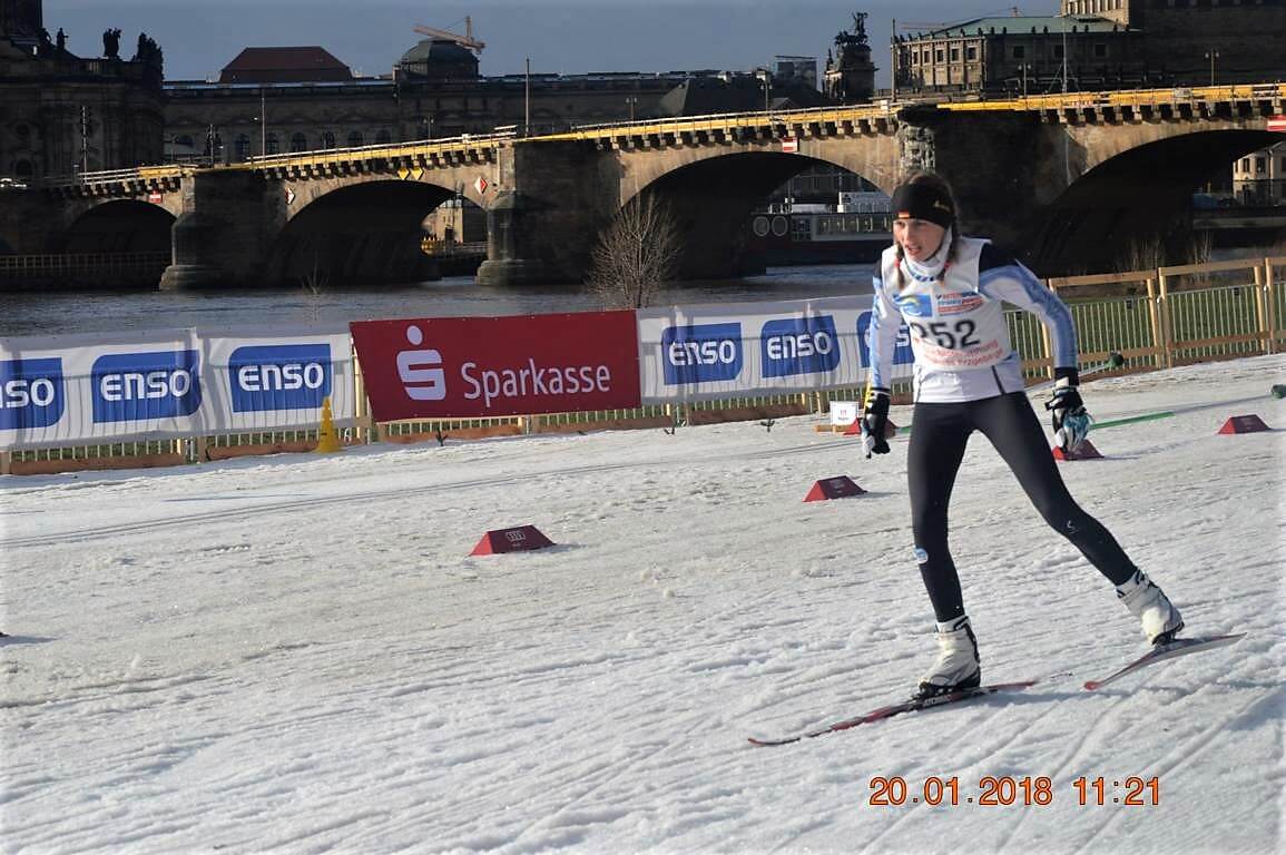 Dresden:  Kaum zu glauben, was so alles geht. Skiweltcup in Dresden am Elbufer vor historischer Kulisse. Das war vor mehr als einer Woche und die Nachwuchstalente des TSV Leuna konnten die besten der Welt in ihrer Sportart einmal live erleben. Nun am 20. Januar standen sie an gleicher Stelle selbst am Start. Fast unglaublich, was die Macher aus dem Skiverband Sachsen da den fast 450 Kindern am Elbufer bei der Junior-Trophy und dem Internationalen Sachsencup mit Teilnehmern von 5 Jahren bis zu den Erwachsenenklassen ermöglichten. Unter ihnen auch die Sportschüler des SVSA und 11 weitere Talente vom TSV Leuna. Wie immer blieben sie nicht ganz ohne Erfolge und tolle Ergebnisse. Gefordert war ein Sprintwettkampf in freier Technik. Erfolgreichste war wieder einmal eine Löschke! Dieses Mal nicht Jessica, die sich in Italien auf die Teilnahme auf die Juniorenweltmeisterschaft vorbereitet, sondern die jüngere, aber schon sehr erfolgreiche Schwester Cora. Bei diesem Rennen ist der Knoten mal so richtig geplatzt. Endlich konnte sie ihre Dauerkonkurrentin Charlotte Böhme (SV Stützengrün) besiegen und im Finale einen klaren Sieg bei den 14-jährigen Mädchen herauslaufen.  In der U15 lief Alina Celine Rippin vom NSV Wernigerode sowohl im Prolog als auch im Finale ein sehr beherztes Rennen und konnte sich am Ende mit der Bronzemedaille schmücken lassen. Cedric Sikorski zeigt sich weiter in aufsteigender Form. Leider entschied der Zieleinlauf im Fotofinish gegen ihn und er wurde bei den 15-jährigen Jungen ganz knapp 4.