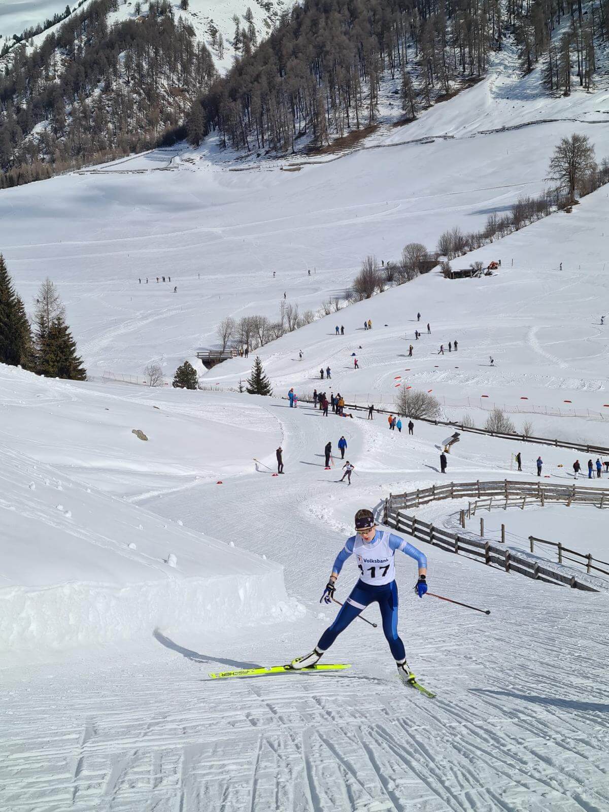 Schwester Celina Grimmecke (Wintersportverein „Grün-Weiß“ Elbingerode) mit dem fünften Rang (4. Prolog) ihre Sprintfähigkeiten.