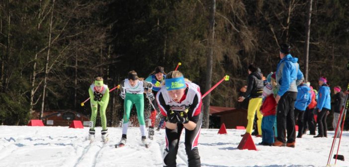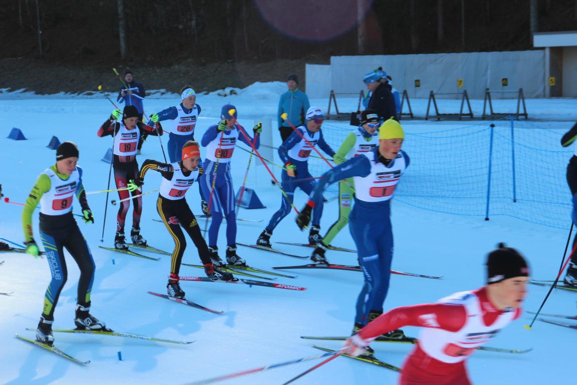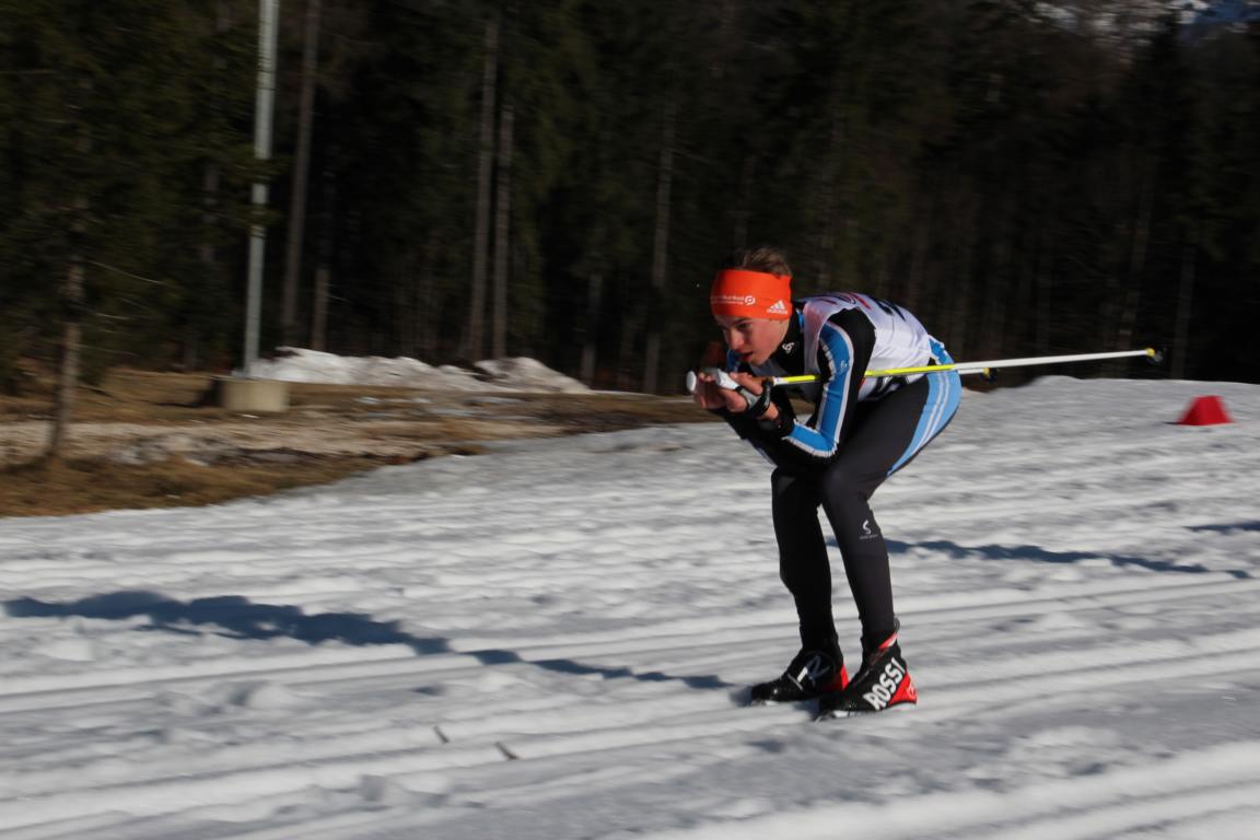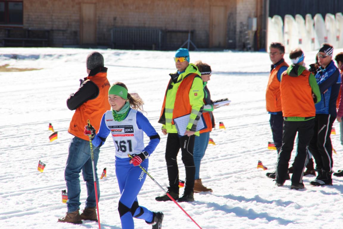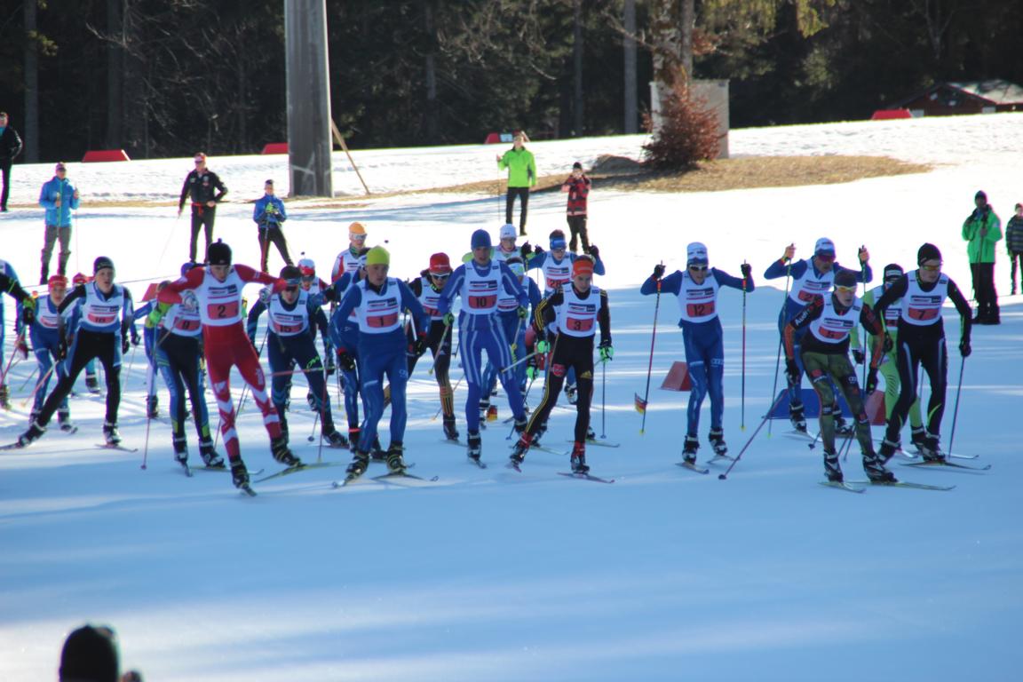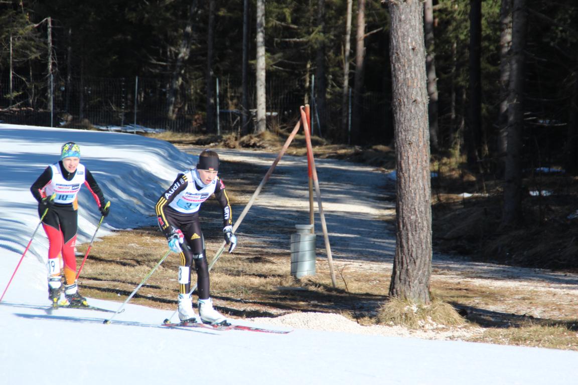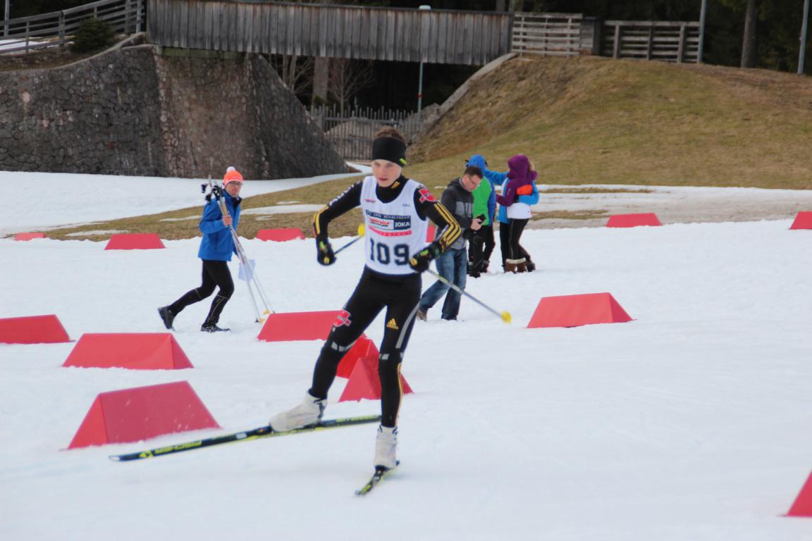 Am Folgetag standen beim Massenstartrennen die längsten Streckenlängen der Saison an. Je nach Altersklasse mussten auf einer 2km Schleife 6, 8 bzw. 10km absolviert werden. Zusätzliches Erschwernis waren die hohen Temperaturen die am Nachmittag den ohnehin durchnässten Schnee aufweichten. Mit Alina Rippin ging die Altersklasse 14 weiblich als erstes ins Rennen. Sie konnte ihre gute Form bestätigen und lief bis zum Schluss um die Medaillenränge mit. Erst am Schlussanstieg konnten sich einige Läuferinnnen um wenige Meter von der Führungsgruppe lösen, bis zur Zielgeraden blieb es aber um jede Platzierung spannend. Schließlich konnte Alina den achten Rang erkämpfen. Mit lediglich 12 Sekunden auf die Siegerin ein abermals zufriedenstellendes Ergebnis für Heimtrainer Thomas Kühlmann und Thomas Hedderich.