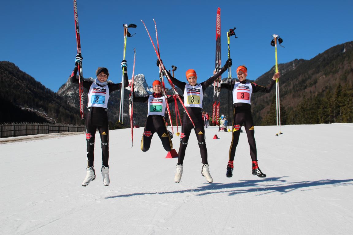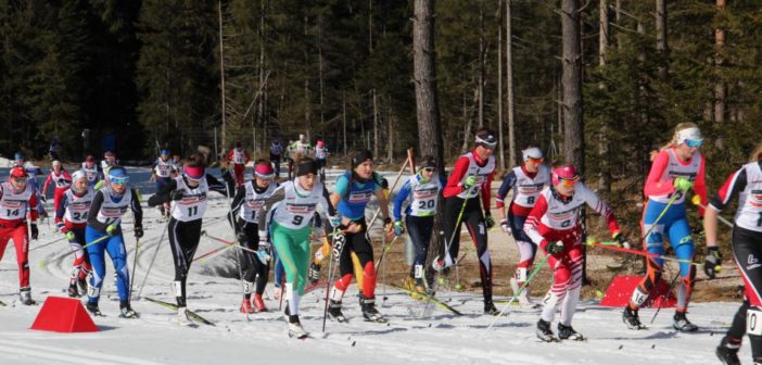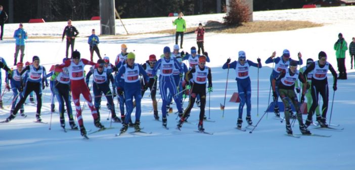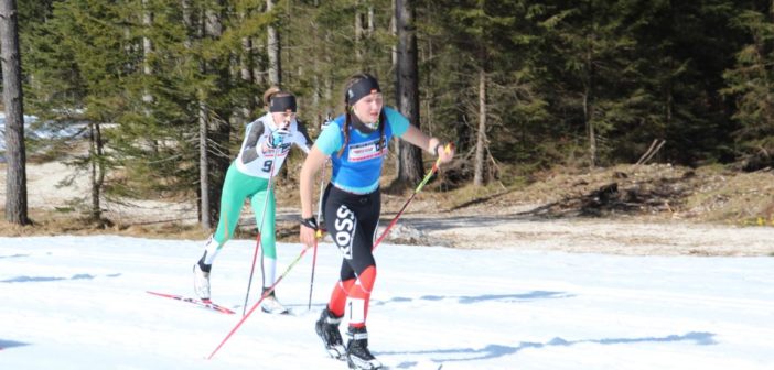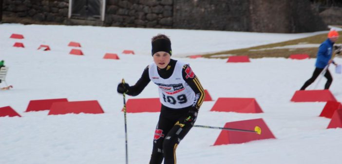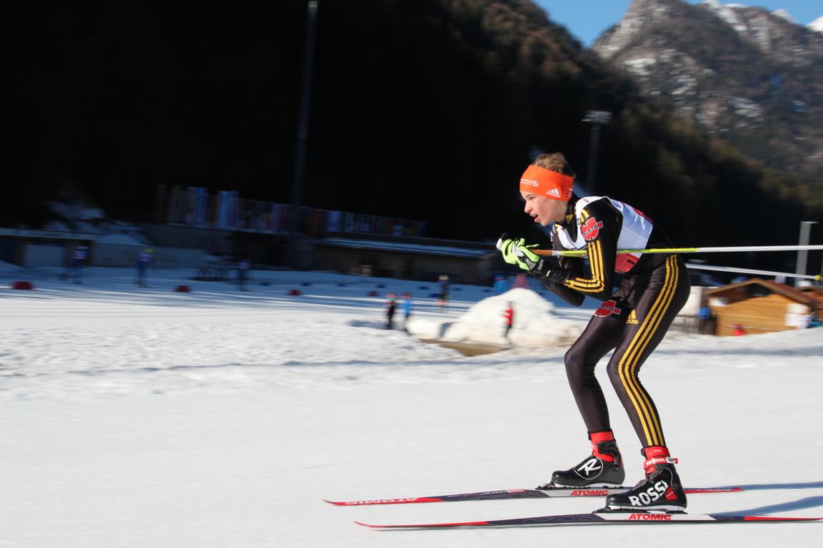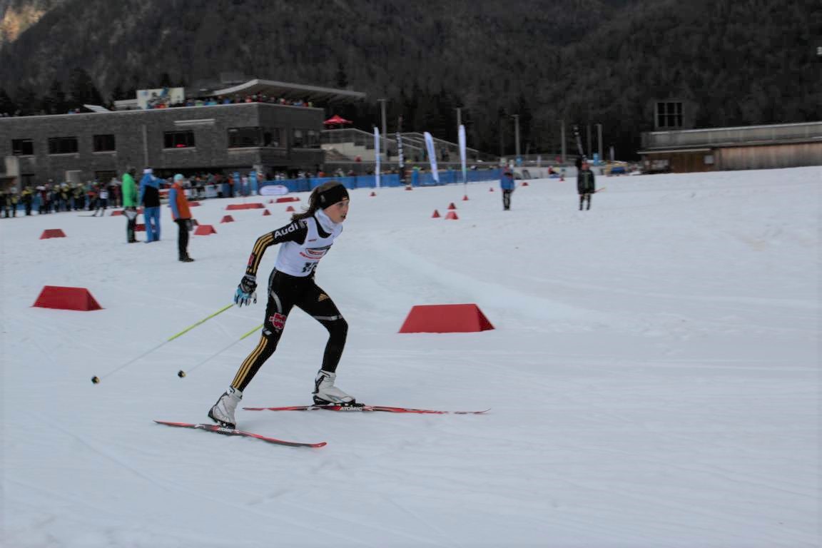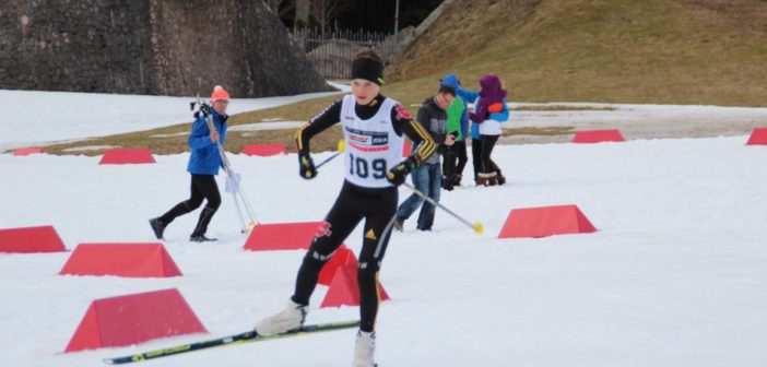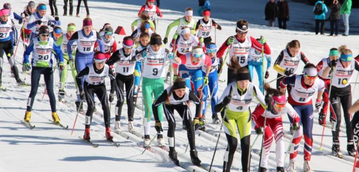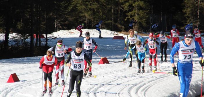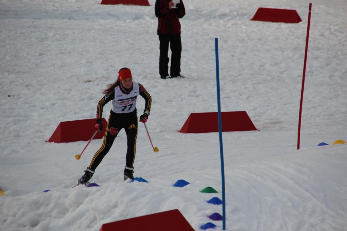 Am Folgetag standen beim Massenstartrennen die längsten Streckenlängen der Saison an. Je nach Altersklasse mussten auf einer 2km Schleife 6, 8 bzw. 10km absolviert werden. Zusätzliches Erschwernis waren die hohen Temperaturen die am Nachmittag den ohnehin durchnässten Schnee aufweichten. Mit Alina Rippin ging die Altersklasse 14 weiblich als erstes ins Rennen. Sie konnte ihre gute Form bestätigen und lief bis zum Schluss um die Medaillenränge mit. Erst am Schlussanstieg konnten sich einige Läuferinnnen um wenige Meter von der Führungsgruppe lösen, bis zur Zielgeraden blieb es aber um jede Platzierung spannend. Schließlich konnte Alina den achten Rang erkämpfen. Mit lediglich 12 Sekunden auf die Siegerin ein abermals zufriedenstellendes Ergebnis für Heimtrainer Thomas Kühlmann und Thomas Hedderich.
