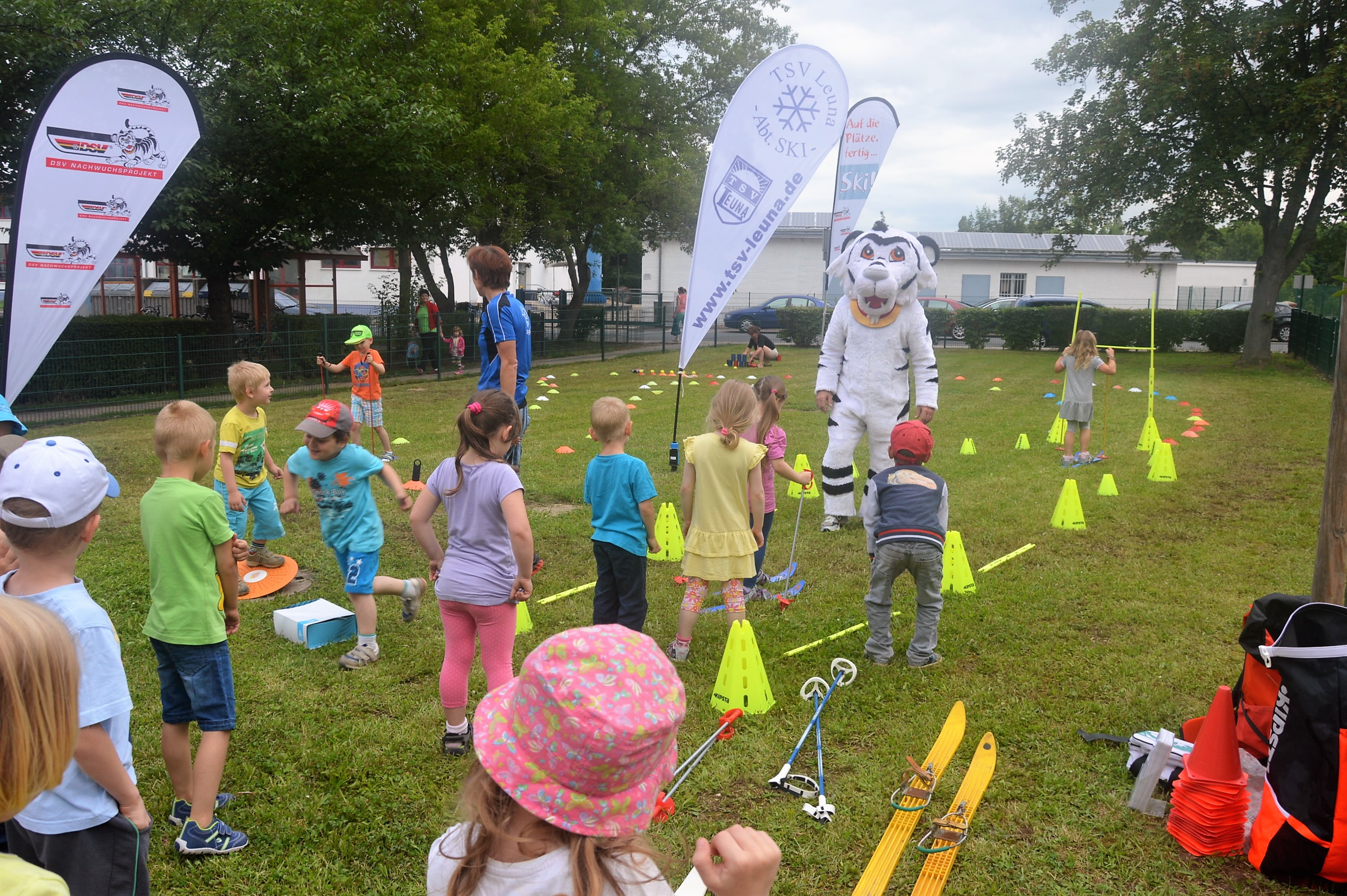Am 22.Juni 2016 war es wieder soweit, Skitty vom Deutschen Skiverband, den die Kinder der größten Einrichtung der Stadt Bad Dürrenberg noch vom letzten Jahr kannten, hatte sich wieder angemeldet und das Trainerteam des TSV mitgebracht. Rund 90 Kinder hatten sich schon tagelang darauf gefreut, Skitty wieder zu sehen. Einige hatten sogar ihre Inline-Skates mitgebracht.