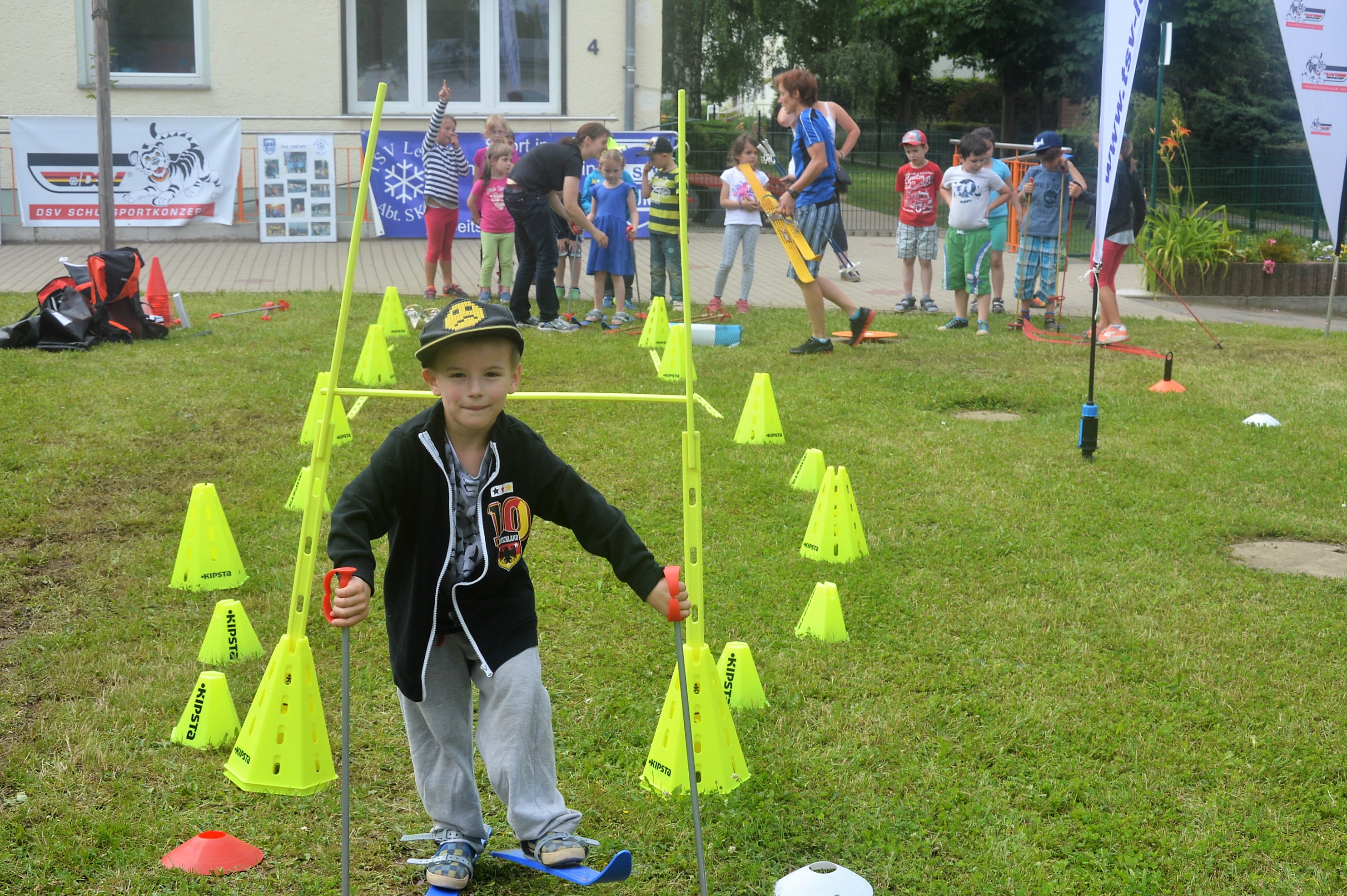 Ungeduldig waren sie schon, ehe sie an der Reihe waren, um mit Ski den Parcours auf der Wiese vor dem Haus zu überwinden. Dabei waren auch Dosen mit Bällen zu treffen und ein Hindernis zu durchkriechen. Nicht so einfach für manchen, dabei auch noch Ski und Stöcke mitzunehmen. Auch beim Inline-Skaten herrschte großer Andrang. Wer schon zu Hause geübt hatte, konnte natürlich den anderen Kindern sein Geschick schon mal zeigen, wie z.B. die 5-jährige Lilly-Marie, die schon seit über einem Jahr fleißig im Verein mit trainiert. „Wir sind gespannt, ob von den Schulanfängern auch in diesem Herbst wieder einige Kindern den Weg in die Schul-Arbeitsgemeinschaft im Rahmen des DSV-Schulsportkonzepts finden“, frohlockt die Trainerin des TSV Leuna, Sabine Löschke. Das Interesse ist auf diesem Weg zumindest geweckt.