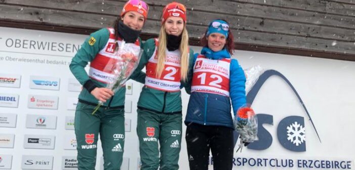 Am Freitag startete bei besten Bedingungen der Freistil Sprint in der Sparkassen-Skiarena. Im internationalen Feld setzten sich zwei DSV Sportlerinnen durch: Lisa Lohmann siegte vor Jessica Löschke. Dritte wurde die Französin Flora Dolci. Samstag folgte der Klassich Massenstart. Für Jessica standen somit 10km auf dem Tagesprogramm, die sie mit der fünft besten Zeit und als zweitbeste Deutsche in 32:02.3min und +1:03min Rückstand auf Platz 1 absolvierte.