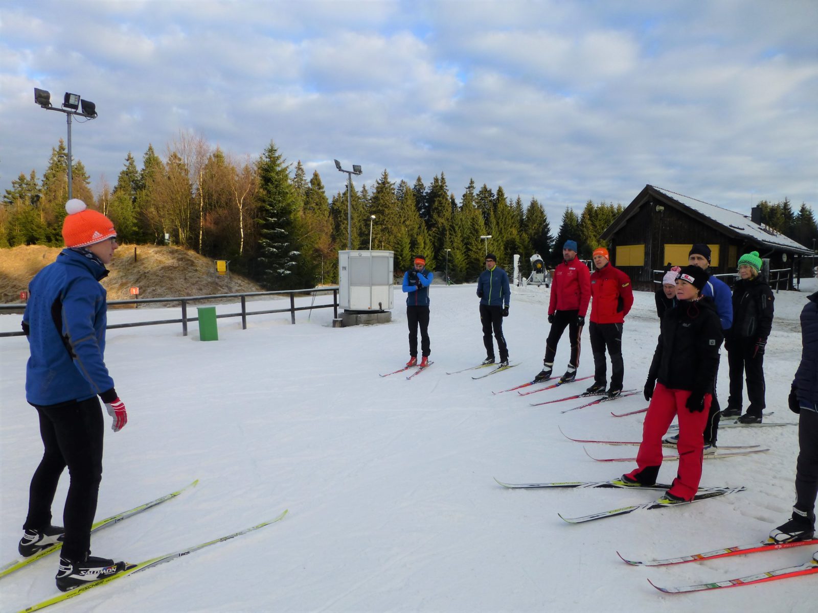 Noch vor Weihnachten konnte trotz des Schneemangels eine Übungsleiterfortbildung am Landesleistungszentrum Sonnenberg erfolgreich statt finden. So nutzten die 10 Teilnehmer die zwei Tage, um unter Anleitung der Referenten Holger Stein und Thomas Hedderich auf den Resten der vorhandenen Kunstschneedecke der Anlage, neue Aspekte der Techniken im Skilanglauf zu erarbeiten. In den Nachmittagstunden wurden dann in der Turnhalle der August-Hermann Francke-Schule Inhalte des ergänzenden Trainings mit Immitationsübungen, Spielformen und Athletik vermittelt.